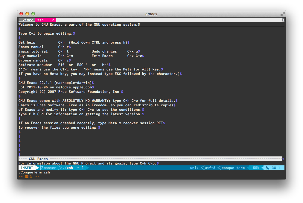 上記のように、autocmdを使って、zshバッファのとき、バッファ名からConqueの生成したプロセスを終了できます。